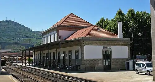 The Régua railway station previously known as Regoa railway station,[1][2] is a station on the Douro Line, which serves the town of Peso da Régua, in the District of Vila Real, in Portugal. It opened in 1879,[3] and served as a junction point with the Corgo Line, which operated between 1906[4] and 2009.[5][6]