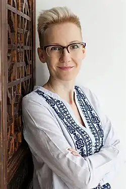 Réka Tóth-Vásárhelyi (artist name: Renka) (Budapest, 27 July 1975 – )[1] is a Hungarian wood and textile artist, Kokeshi artist and art teacher, a maker of kokeshi dolls, the first foreign prize winner of the 2015 National Kokeshi Doll Competition in Shiroishi, Japan and its first foreign grand prize winner in 2016. She is a representative of the modern branch of Kokeshi Art.