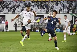 Ró-Ró (left) in action for Qatar against Japan at the 2019 Asian Cup Final