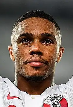 Ró-Ró was also called up for the country's guest appearances at the 2019 Copa América[16] and the 2021 CONCACAF Gold Cup, reaching the semi-finals of the latter.[17] At the inaugural FIFA Arab Cup, in which Qatar came third on home turf that December, his campaign ended with a first-half injury against Oman in the second group game.[18]