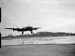 Handley Page Halifax aircraft landing at RAF Melbourne during the Second World War