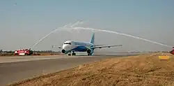 RAK Airways was an airline based in Ras Al Khaimah, one of the seven emirates in the United Arab Emirates.[1][2] It was established in 2006 but briefly ceased operations in 2009 and relaunched in 2010 with a new livery and under new management.[3] On 1 January 2014, the airline suspended all its flights but announced that they may resume at a future date after a restructuring process.[2][4]