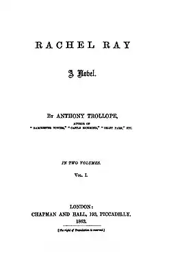 - ^ a b Hamer, Mary. "Rachel Ray" in The Oxford Reader's Companion to Trollope, ed. by R. C. Terry. Oxford University Press, 1999. pp. 457–458.