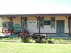Two significant relics from the Raetihi Branch still exist. The Raetihi station building has been relocated from its old site to a new location in the town and has been restored as part of the Waimarino Museum.[13] At the other end of the branch, near Ohakune's famous big carrot, an old truss bridge remains in place. For the rest of the line's length, notable remnants are absent, but the formation can be sighted at points, especially where embankments or cuttings were required.[14]