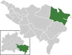 Located in the south-eastern suburb of Berlin, Rahnsdorf is the easternmost locality of the city. The easternmost point is represented by Springeberg, a ground located in front of Flakensee lake, bordering with Woltersdorf and Erkner, two municipalities of the Oder-Spree district, Brandenburg. Similar to an exclave it is linked to Berliner mainland with a road (Woltersdorfer Landstraße) forming a strip, as in Steinstücken. The other municipality bordering with Rahnsdorf is Schöneiche, also part of Oder-Spree. Another peculiarity of Rahnsdorfer borders with Brandenburg is represented by Landjägerallee, a road parallel to the railway that forms a thin and long strip belonging to Erkner surrounded by Berliner territory. The localities of Treptow-Köpenick bordering with Rahnsdorf are Friedrichshagen, Köpenick and Müggelheim.