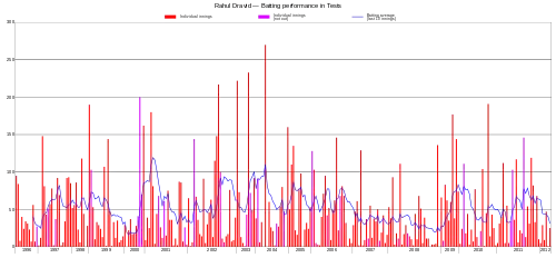 - ^ a b Rahul Dravid- Analysis of Performances at Home and Away Archived 24 November 2009 at the Wayback Machine. Retrieved 23 November 2010.