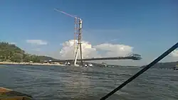 The Ministry of Development reached a success to begin the construction of the bridge in June 2013 as part of the 10th National Development Plan. The groundbreaking ceremony was held on 16 January 2014, officiated by the Crown Prince Al-Muhtadee Billah.[1] The joint-venture between the South Korean company Daelim Industrial and local Swee constructed the bridge, which took about three years and cost 139 million Brunei dollar (B$100 million as of October 2017).[3][4][7][1][10]