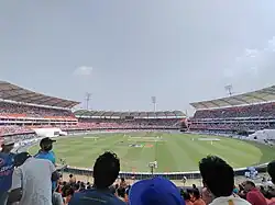 Located in the eastern suburb of Uppal, it has a seating capacity of 39,200 and extends across 15 acres of land.[4] It serves as the home ground the IPL team Sunrisers Hyderabad. As of 13 October 2024, it has hosted 6 Tests, 10 ODIs, and 3 T20Is. The stadium hosted the final of 2017 IPL and the final of the 2019 IPL. The stadium hosted its first ICC event in October 2023 during the 2023 Cricket World Cup.