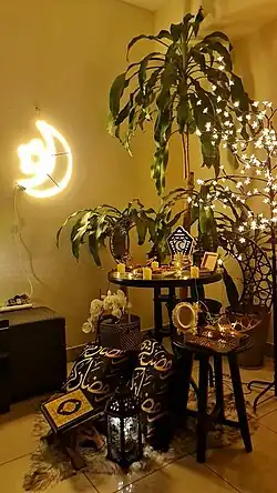 Emirati society places great importance on adhering to customs and traditions during Ramadan, with the "Majlis" being prepared for family and neighbors to receive visitors. In some cases, gifts are presented to families, Quran readers, and friends, as a way to strengthen kinship relationships.[25]