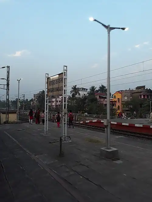 The Howrah–Kharagpur line was opened in 1900. There is very important railway station but a large number of people work from nearby villages and towns through the station.[6]