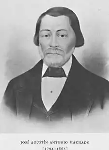 José Manuel Machado (1756–1810) married María de la Luz Valenzuela Y Avilas in 1780, and traveled in Rivera's 1781 expedition to Alta California. In 1797, Machado retired from military service and returned to the Pueblo de Los Angeles. Two of his sons, José Agustín Antonio Machado and José Ygnacio Antonio Machado, tried unsuccessfully for some time to get grazing rights on land near the pueblo.