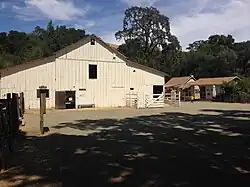 Deer Hollow Farm is an educational center where the public can observe, study and participate in a working farm. The 150-year-old Farm covers ten acres and stands as a reminder of Santa Clara County's agricultural history. In the tradition of a working homestead, Deer Hollow Farm continues to produce food on-site. The farm is home to a variety of animals including chickens, rabbits, goats, sheep, pigs and a cow. Farm fresh eggs and seasonal orchard produce are for sale when available.[4] It is a one-mile easy walk west from the Rancho parking lots along the West Fork Permanente Creek. The restored Grant Ranch Cabin has been furnished to represent living conditions in the late 1800s. The Deer Hollow Farm section of the Rancho San Antonio land preserve is managed by the City of Mountain View recreation division. The city manages all Farm programs and ensures that no further development takes place on the land. The city of Mountain View is instrumental in the preservation of the area and protects the environment against human intervention.[4]