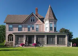 The Rand House, nicknamed "Random", is a historic house in Monticello, Minnesota, United States, constructed in 1884 and operated as a bed and breakfast from the mid-1990s until 2020. The house is now a private residence. It was the centerpiece of a summer estate owned by Minneapolis businessman Rufus Rand, Sr., and his wife Susan Mealey.[3] The Rand House and a nearby building were listed on the National Register of Historic Places in 1979 as the Rufus Rand Summer House and Carriage Barn for having local significance in the themes of architecture, commerce, and entertainment/recreation.[4] They were nominated for being representative of the late-19th-century country estates built by Twin Cities businessmen, their Queen Anne architecture, and association with Rand, a prominent utility executive.[3]