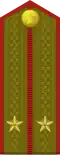 | Hadseregtábornok | Vezérezredes | Altábornagy | Vezérőrnagy | Ezredes | Alezredes | Őrnagy | Százados | Főhadnagy | Hadnagy | Alhadnagy | ||||||||||||||