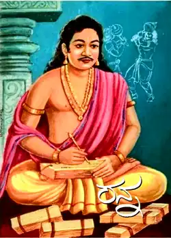 Ranna (c. 949–1015 CE) was one of the earliest and most celebrated Kannada poets, regarded as one of the "three gems" (Ratnatraya) of classical Kannada literature along with Adikavi Pampa and Ponna (poet) He flourished in the Western Chalukya court of Tailapa II and his successor Satyashraya, in what is now Karnataka, India. Ranna is renowned for his sophisticated style, martial themes, and deep Jain influence. He is best known for his two major surviving works: "Sahasa Bhima Vijaya" (also known as "Gadayuddha") and "Ajitha Purana" (Ajitanatha purana) about the second tirthankar of Jainism.[1][2]
