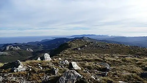 New Zealand has more than 40 species of wild buttercups. Thirty-four of these are native and they usually grow in mountain regions and on some predator-free offshore islands.[5] The Mount Allen buttercup is one of three species endemic to Rakiura/Stewart Island. It is found only in the remote Tin Range on the slopes of Mount Allen. It survives in the shady damp crevices and ledges of rocky outcrops high on the mountainside at altitudes of 700 m (2,300 ft).[3][2][1] It is most closely related to R. pinguis, which is found on the Auckland and Campbell Islands, and the yellow mountain buttercup (R. sericophyllus) from the South Island.[4]