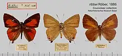 1. ^ Röber, 1886 Neue Tagschmetterlinge der Indo-Australischen Fauna Corr.-Bl. Ent. Ver. Iris 1 (3) : 45-72, pl. 2-5