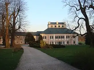 Ratibořice Château (Czech: zámek Ratibořice) is a chateau in Ratibořice village (part of Česká Skalice) in the Hradec Králové Region of the Czech Republic. It stands on an elevated plain below which valley in the bend of the Úpa river widens. Together with Babiččino údolí (Grandmother's valley), situated between Česká Skalice and Havlovice, it offers the Baroque architecture and Bohemian landscape, ranking among the best-known and most-frequented places in East Bohemia. They have become well known to the general public thanks to Babička (The Grandmother), the most famous work of the writer Božena Němcová.