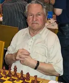 Ratmir Dmitrievich Kholmov (Russian: Ратмир Дмитриевич Холмов) (13 May 1925 in Shenkursk – 18 February 2006 in Moscow) was a Russian chess Grandmaster. He won many international tournaments in Eastern Europe during his career, and tied for the Soviet Championship title in 1963, but lost the playoff. Kholmov was not well known in the West, since he never competed there during his career peak, being confined to events in socialist countries. His chess results were impressive, so this may have been for security reasons, as Kholmov had been a wartime sailor. But he was one of the strongest Soviet players from the mid-1950s well into the 1970s, and was ranked as high as No. 8 in the world by Chessmetrics.com from August 1960 to March 1961. Kholmov stayed active in competitive chess right to the end of his life, and maintained a high standard of play past the age of 80.