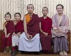 Their son, Dungsay Akasha Vajra Rinpoche, was born on 27 March 2010, the 12th day of the 2nd month of the Tibetan calendar, the anniversary of the Paranirvana of Jetsun Drakpa Gyaltsen.[5] His birth was accompanied by a slight earthquake in New Delhi where he was born. Such an event is considered an auspicious sign according to Tibetan belief. It portends that a great being has entered this world. On 24 January 2013 their second daughter, Jetsunma Kunga Chimey Wangmo Sakya, was born in Dehra Dun, India.