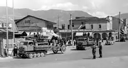 A Raupenschlepper Ost pulling 105 mm howitzer in Skanderbeg Square, Tirana, the capital of Albania, after taking over the city from the Italians, September 1943.