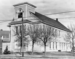 In 1929, Japanese Canadian members of the Jōdo Shinshū Buddhist faith purchased the building to use a temple, schoolhouse, and meeting place. It was the first Buddhist temple to be established in Alberta.[2] Beginning in 1932, a co-operative store known as the "Kobai Kumiai" also operated out of the building. The store operated until the 1990s and the temple functioned until 2006, when the temple's altar and ornamentation was moved to a Buddhist temple in Lethbridge, Alberta.[1] In 1988, the Raymond Buddhist Church was described as "one of the finest [Buddhist] shrines in North America."[2]