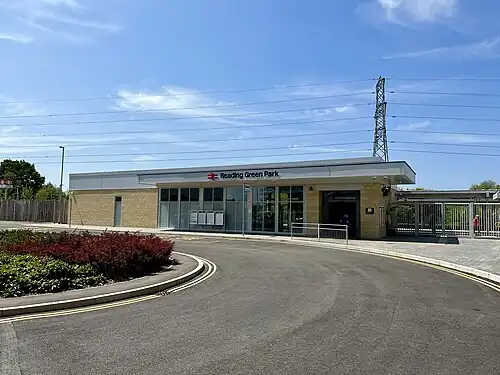 Reading Green Park railway station is a railway station in Green Park, Berkshire, England. The station serves the Green Park business area and the Madejski Stadium, as well as the Green Park Village residential development. It is on the Reading to Basingstoke Line, south of Southcote Junction. The station opened later than planned on 27 May 2023, due to construction delays caused by the COVID-19 pandemic.
