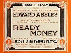 Ready Money is a 1914 American comedy silent film directed by Oscar Apfel adapted by James Montgomery from his play of the same name. The film stars Edward Abeles, Monroe Salisbury, Jode Mullally, Jane Darwell, Bessie Barriscale and Florence Dagmar.[1][2] The film was released on November 5, 1914, by Paramount Pictures.
