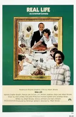 Real Life is a 1979 American mockumentary[3] comedy film starring Albert Brooks (in his directorial debut), who also co-authored the screenplay alongside Monica Johnson and Harry Shearer. It is a spoof of the 1973 reality television program An American Family and portrays a documentary filmmaker named Albert Brooks who attempts to live with and film a dysfunctional family for one full year.