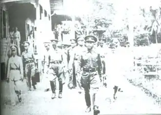 In March 1935, King Prajadhipok announced his abdication while still in Europe, the new nine-year-old king Ananda Mahidol was still in Switzerland.[1] A group of army sergeants who in charge of an armory, led by Sawas Mahamad, plotted a revolution plan against the government of Phraya Phahon. The plot started at the 2nd Infantry Division in command of Major Luang Prahanripu, located in current Ministry of Education office. They planned to kill important military officers and government officials, included Pridi Banomyong, and the regent, Prince Aditya Dibabha,[2] to arrest Phraya Phahon and Plaek Phibunsongkhram, and to take over Ministry of Defence Headquarter. They planned to release political prisoners and force them to join the group. In the end of the plot, they would bring Prajadhipok back to the throne.[3]