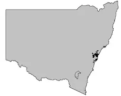 This species is only found around temporary creeks and soaks in sandstone habitats in woodland, heathland and dry sclerophyll forest around the Sydney basin.