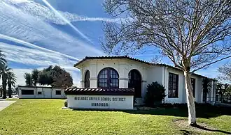 The Redlands School District was organized and founded in 1905. It was created from the already established Lugonia, Mission School and Crafton School Districts in the towns of Redlands, Lugonia and the nearby area of Crafton.[4] One high school was established by the districts prior to consolidation, the "Union High School", now Redlands High School in 1891. The Union High School was originally on the northwest corner of Orange Street and Colton Avenue at a temporary building called, the Wilson-Berry Building. Redlands High School's current campus on Citrus Avenue was completed in 1892, it has remained in the same location since opening day, the only high school in California still operating on its original site. It is considered the oldest high school in California. The school districts consolidated into the Redlands Unified School District (RUSD) in 1905.[5]