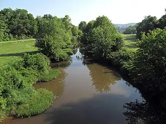 • The Middle Fork Reedy Creek,[9] 12.4 miles (20.0 km) long,[6] is a tributary of the Left Fork. It rises in western Roane County and flows generally north-northeastward, through the community of Peniel, to the town of Reedy, where it flows into the Left Fork approximately 0.3 miles (0.48 km) upstream of the latter's confluence with the Right Fork.[7][8]