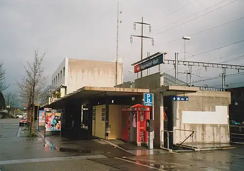 Regensdorf-Watt is a railway station in Switzerland, situated in the municipality of Regensdorf. The station is located between the towns of Regensdorf and Watt on the Wettingen-Effretikon railway line (Furttal line),[3][4] within fare zone 111 of the Zürcher Verkehrsverbund (ZVV).[5]