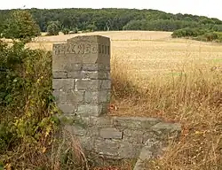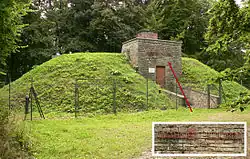 Bridges spanning the Weser river were constructed and used in mock battles with the participation of panzers and airplanes and a force of about 10,000 men, also featuring an attack on the Bückerdorf.[8] In 1935, the attendance of the peasants at the festival fell due to their dissatisfaction with the policies of the Nazi party and the enactment of the Entailed Farm Law.[10] The same year, a mock village was built on the hill. The village was the target of bombing by the air force and panzers and was eventually destroyed.[11] On 3 October 1937, Hitler during his address at the festival called on Britain to be "reasonable" and threatened to seek colonies.[12] In 1935, Göring, Goebbels and Rudolf Hess followed Hitler as he was greeting people while walking on the Führerweg.[11]