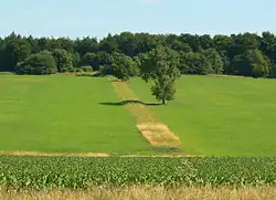 In modern times, the site appears to be just a green area with trees, with little evidence of its Nazi past. However, upon closer inspection, architectural elements of its past can be discerned, chief among them the Führerweg, which now appears as a long line of grass clearly visible on the hillside. There are also other remnants such as rostrum ruins and other infrastructure. The site was one of the most important celebrations of the Reich and within it the Führerweg, an elevated paved corridor 600 metres long and 5 metres wide, was at the centre of the festivities, designed to showcase, in a ritual way, the closeness between the Führer and the people.[13]