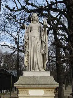 The Queens of France and Famous Women (Reines de France et Femmes illustres) is a group of sculptures in the Jardin du Luxembourg in Paris. It consists of 20 marble sculptures arranged around a large pond in front of the Palais du Luxembourg. Louis-Philippe I chose the women to be portrayed and most of the sculptures were commissioned around 1843, for around 12,000 francs each, and generally exhibited in the Paris Salons of 1847 or 1848.[1]