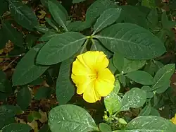 Reinwardtia indica, yellow flax or pyoli, is a species of Linaceae found in the Himalayas. It is the only species in the monotypic genus Reinwardtia.