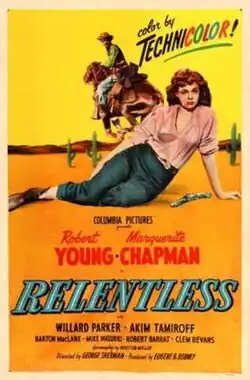 Relentless is a 1948 American Western film directed by George Sherman and starring Robert Young and Marguerite Chapman in the main roles. The film was based on the story, "Three Were Thoroughbreds," by Kenneth Perkins, originally published in the June 1938 issue of Blue Book and then as a hardcover novel in 1939. IMDb and other sources[3] mistakenly claim that the film was remade as the 1953 Audie Murphy film Tumbleweed, which was based on a similarly named story, "Three Were Renegades," by Perkins (originally published in the December 1938 issue of Blue Book). The later story, "Three Were Renegades," was published as a sort-of sequel to the earlier story, "Three Were Thoroughbreds," and the plotlines of the two films mirror the plotlines of their respective source stories.