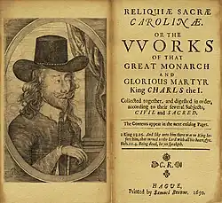 The Reliquiae Sacrae Carolinae (Latin: Reliquiæ Sacræ Carolinæ), or The Works of That Great Monarch and Glorious Martyr King Charls the I, is a book that deals with the events leading to the execution of Charles I of England. Originally published in 1650, it is a collective work of the civil and sacred writings on the King. It incorporates the Eikon Basilike (the "sacred") as well as speeches and letters by the King (the "civil") during the rise of Oliver Cromwell and the Parliamentarians. It is sometimes referred to as "The King's Works" (the Eikon Basilike is also known as "The King's Book").