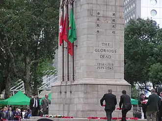 Remembrance Day (Chinese: 和平紀念日; Cantonese Yale: wòh pìhng géi nihm yaht; lit. 'Peace remembering day') is an anniversary in Hong Kong initially celebrating the end of World War I,[1] and was later expanded to commemorate the lives lost in the Battle of Hong Kong and World War II.[2] The anniversary was initially celebrated annually on November 10, and is now celebrated on the second Sunday of November. On Remembrance Day, memorial ceremonies take place at the Cenotaph in Central.