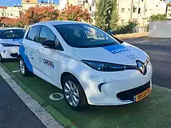 In November 2017, a new electric-car-share project was kicked off in Haifa, Israel. The project features 100 public Renault Zoe cars with its own parking spaces scattered around Haifa, operated by a smart card.