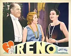 Reno is a 1930 American pre-Code all-talking sound drama film directed by George J. Crone and starring silent serial queen Ruth Roland. It was produced and distributed by early sound era production studio Sono Art-World Wide Pictures. Roland's sound film debut, she would follow up with only one more talkie.[1]