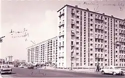 In the USSR, the forerunners of future mass construction based on industrial blocks and panels were cinder block "Stalinka". The architecture of these buildings is utilitarian, there are no decorations, unplastered silicate brick for external walls, almost flat facades with standard stucco decoration. The first four-story frame-panel house in the USSR was built in 1948 in Moscow at 43 Budyonny Avenue (architects G. Kuznetsov, B. Smirnov).[13] At that time, the country's leadership set the task for builders to create the cheapest possible project of a residential building with the possibility of family settlement.[14][15]
