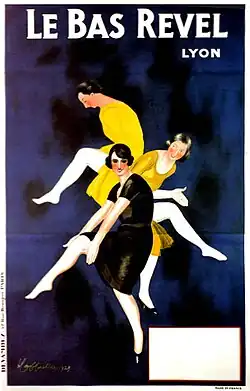 In 1929, Revel diversified into silk stockings and engaged Leonetto Cappiello once again to promote its new products. The artist was inspired by the previous one (with three with umbrellas) and created a poster with three women with silk stockings.