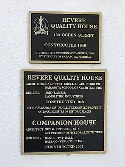 In 2005, the Revere Quality House was designated as a historic site by the City of Sarasota. In 2008, it was placed on the U.S. National Register of Historic Places.[25]