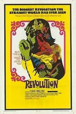 Revolution was to have been premiered in May at the 1968 Cannes Film Festival, but the festival was canceled before it could be shown due to political unrest in France. The first screening was on June 5 in St. Louis, which was followed by a wide release in New York and Los Angeles that August.[2] Soon after, the National Catholic Office of Motion Pictures condemned the film for its depictions of "free love" and extensive nudity. Box office receipts were disappointing (a dispute with union projectionists in NYC didn't help) and while reviews were generally positive, The New York Times noted sadly that the utopianism depicted in the film had dissipated over the past year since it had been filmed.[2] Similarly, DA Latimer of East Village Other opined that while "it's fun, it's pleasant, it's a gas...it's all about love, and love is last summer's bag; Summer '68 is the summer of the Molotov cocktail, of rifle bullets shattering patrol car windows, shotgun pellets in cops' backs. This Revolution flick is another revolution entirely: it's last year's revolution, one that swiftly and silently vanished away, quite away, from losing patience with itself".[4] Because of initially poor box office, UA tried to market Revolution as an exploitation film with ads claiming to expose "weird rites of the hippies, how they live, love and die in their wild, wild world!"[2][4]