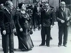 In what became known as the Barcelona May Days of 1937, fighting broke out after civil guards attempted to take over a CNT-run telephone building in Barcelona's Plaça de Catalunya. The Civil guards took the ground floor of the telephone building, but were prevented from taking the upper levels. Soon, trucks carrying armed anarchists arrived. CNT councilors demanded the removal of police commissioner Rodríguez Salas, but Lluís Companys refused.[64] The POUM stood by the CNT and advised them to take control of the city, but the CNT appealed to the workers to cease fighting.[65] With the situation deteriorating, a meeting of CNT delegates from Valencia and the Generalitat under Companys agreed on a ceasefire and a new provisional government, but despite this, the fighting continued. Dissenting anarchists such as the "Friends of Durruti" and radical members of the POUM along with Bolshevik Leninists spread propaganda to continue to the fighting.[66] On Wednesday, 5 May, prime minister Largo Caballero, under constant pressure from the PSUC to take control of public order in Catalonia, appointed Colonel Antonio Escobar of the Republican Guard as delegate of public order, but on his arrival in Barcelona, Escobar was shot and seriously wounded.[67] After constant appeals by the CNT, POUM and UGT for a ceasefire, the fighting abated on the morning of 6 May. In the evening, news reached Barcelona that 1,500 assault guards were approaching the city. The CNT agreed on a truce after negotiations with the minister of interior back in Valencia. They agreed that the assault guards would not be attacked as long as they refrained from violence and that the CNT would order its members to abandon the barricades and go back to work.[68] On 7 May, the assault guards entered Barcelona unopposed, and soon there were twelve thousand government troops in the city.[69]
