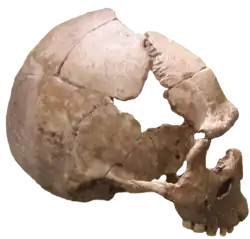 Heberer and Kurth from Göttingen University reconstructed the skull again and carried out fluorine and 14carbon dating on the surrounding material.[3][4][5][6][7] They suggested the skull belong to a 'modern' homo sapiens sapiens. Together with the 14carbon age of the calcareous sinter that surrounded the skull at 8,365 ± 100 BP,[8] the owner of the skull was thus firmly believed to have lived in the late to early Preboreal. This correlates to the Mesolithic period.