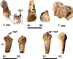 4. ^ a b Godefroit, Pascal; Garcia, Géraldine; Gomez, Bernard; Stein, Koen; Cincotta, Aude; Lefèvre, Ulysse; Valentin, Xavier (26 October 2017). "Extreme tooth enlargement in a new Late Cretaceous rhabdodontid dinosaur from Southern France". Scientific Reports. 7 (1): 13098. Bibcode:2017NatSR...713098G. doi:10.1038/s41598-017-13160-2. PMC 5658417. PMID 29074952.